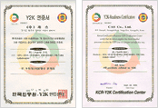 카스는 9월 30일 한국인증원-Y2K인증센터로부터 정보시스템(IT)부문 및 비정보시스템 (NON-IT) 부문, 제품부문에 대하여 Y2K 인증을 받았습니다.